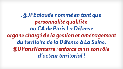 Jean-François Balaudé a été nommé en tant que personnalité qualifiée au CA de l'établissement public local Paris La Défense