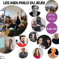 - Les Midi-Philo du jeudi2 octobre 2025 - 18 décembre 2025Créés en 2023 sous l'impulsion de François Thomas, maître de conférences à l'université Paris Nanterre, les "Midi-Philo" permettent à des enseignants·es et des étudiant·es de présenter l'actualité de leur recherche dans un cadre convivial. L'intervention est suivie d'un échange avec les étudiant·es. Ces Midis sont ouverts à toutes et tous, philosophes ou non philosophes. Lire la suite